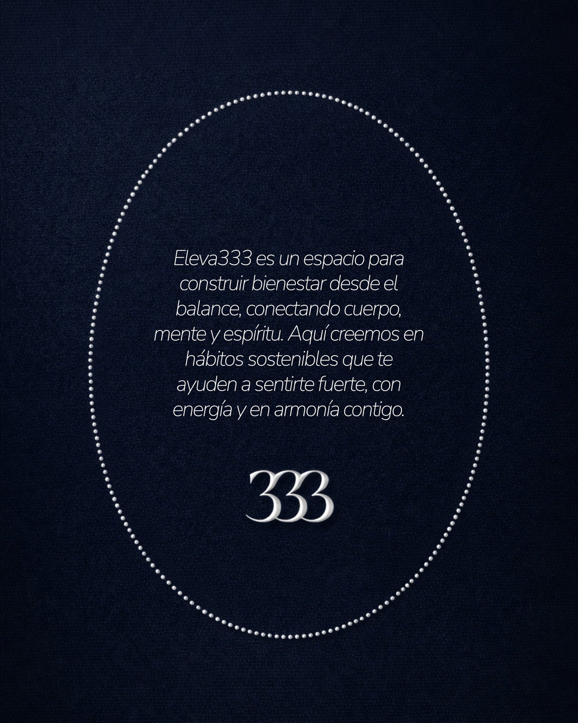 Eleva333 es un espacio para construir bienestar desde el balance, conectando cuerpo, mente y espíritu. Aquí creemos en hábitos sostenibles que te ayuden a sentirte fuerte, con energía y en armonía contigo.